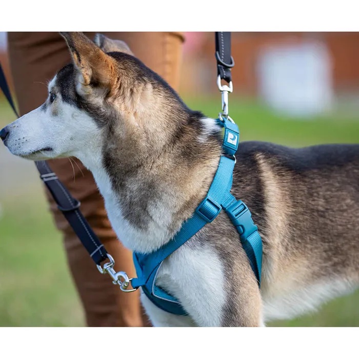 - La boucle martingale arrière fournit une pression sur les épaules pour éviter de tirer, le point de connexion avant redirige l’attention du chien